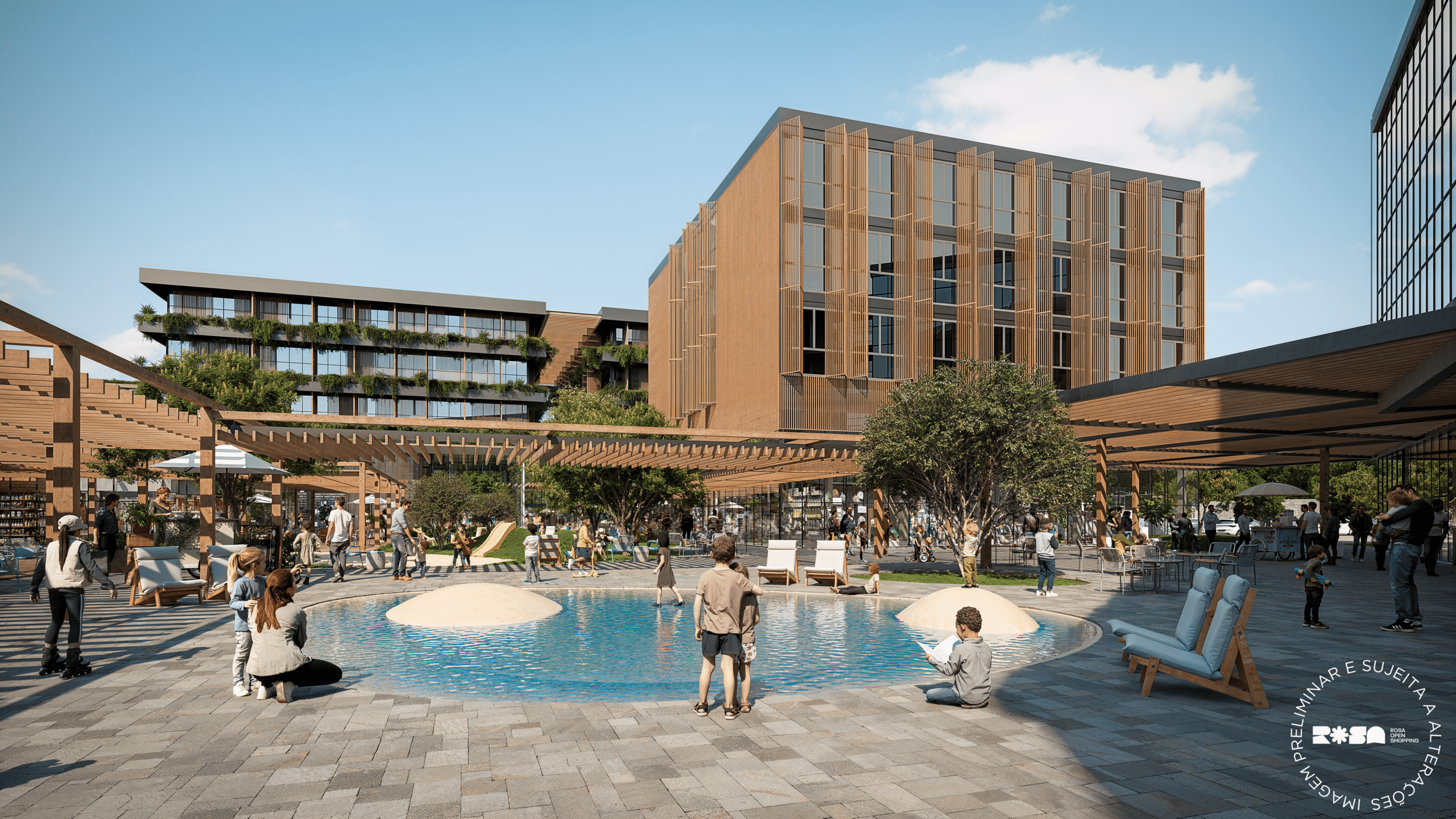Mais do que um centro comercial, o Rosa Open Shopping foi concebido como um complexo multiuso a céu aberto, onde arquitetura, paisagismo e convivência se encontram para estimular conexões entre pessoas, experiências e negócios. Lojas, cinema, eventos culturais, academias, clínicas, escolas, offices e studios formam um ecossistema dinâmico pensado para funcionar o ano inteiro.