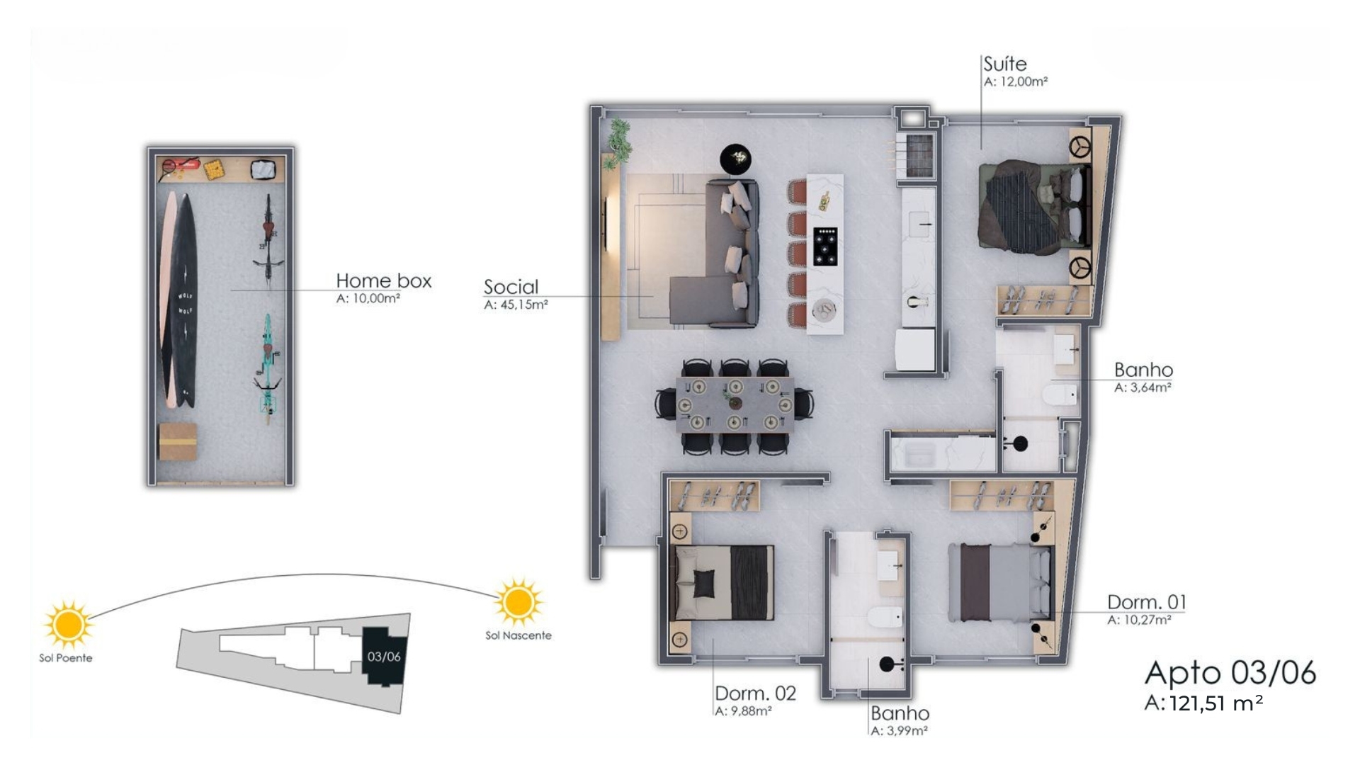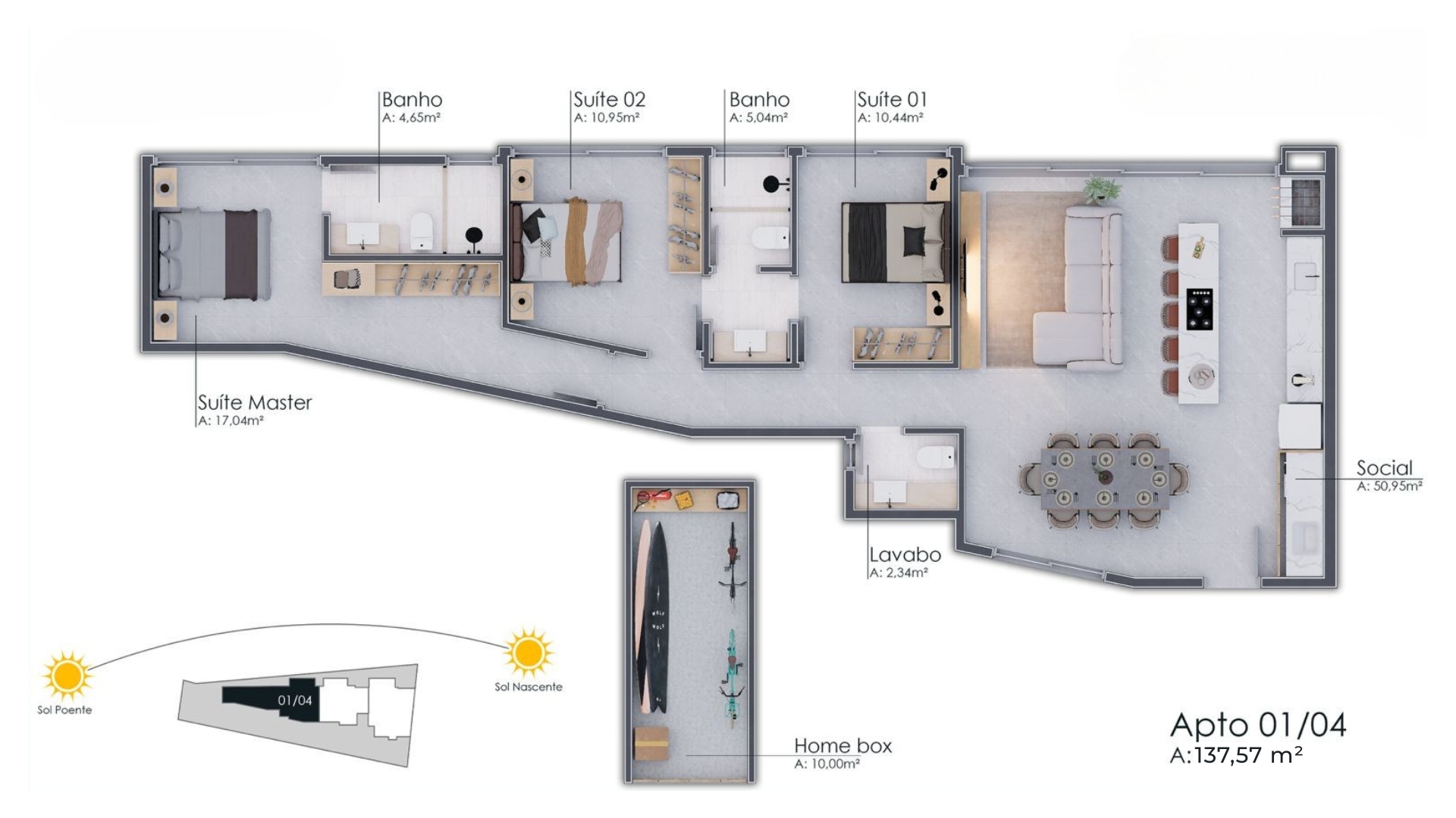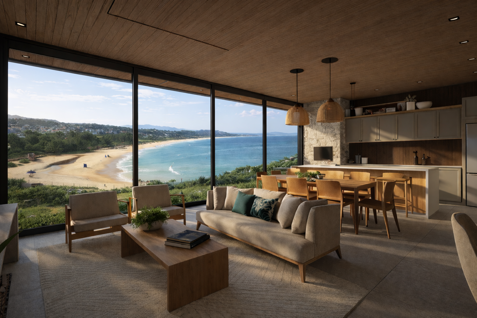 Cada apartamento foi projetado para oferecer vista definitiva para o mar em todos os cômodos, proporcionando uma experiência única de viver no litoral catarinense.